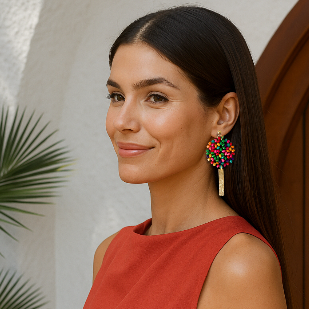 Descubre los pendientes Olivia, la fusión perfecta entre color, ligereza y estilo. Un diseño alegre con bolitas de madera multicolor que no solo ilumina tu rostro, sino que añade un toque único a cualquier look. Ideales para invitadas, ferias, eventos especiales o para elevar tu día a día con un complemento artesanal y diferente.