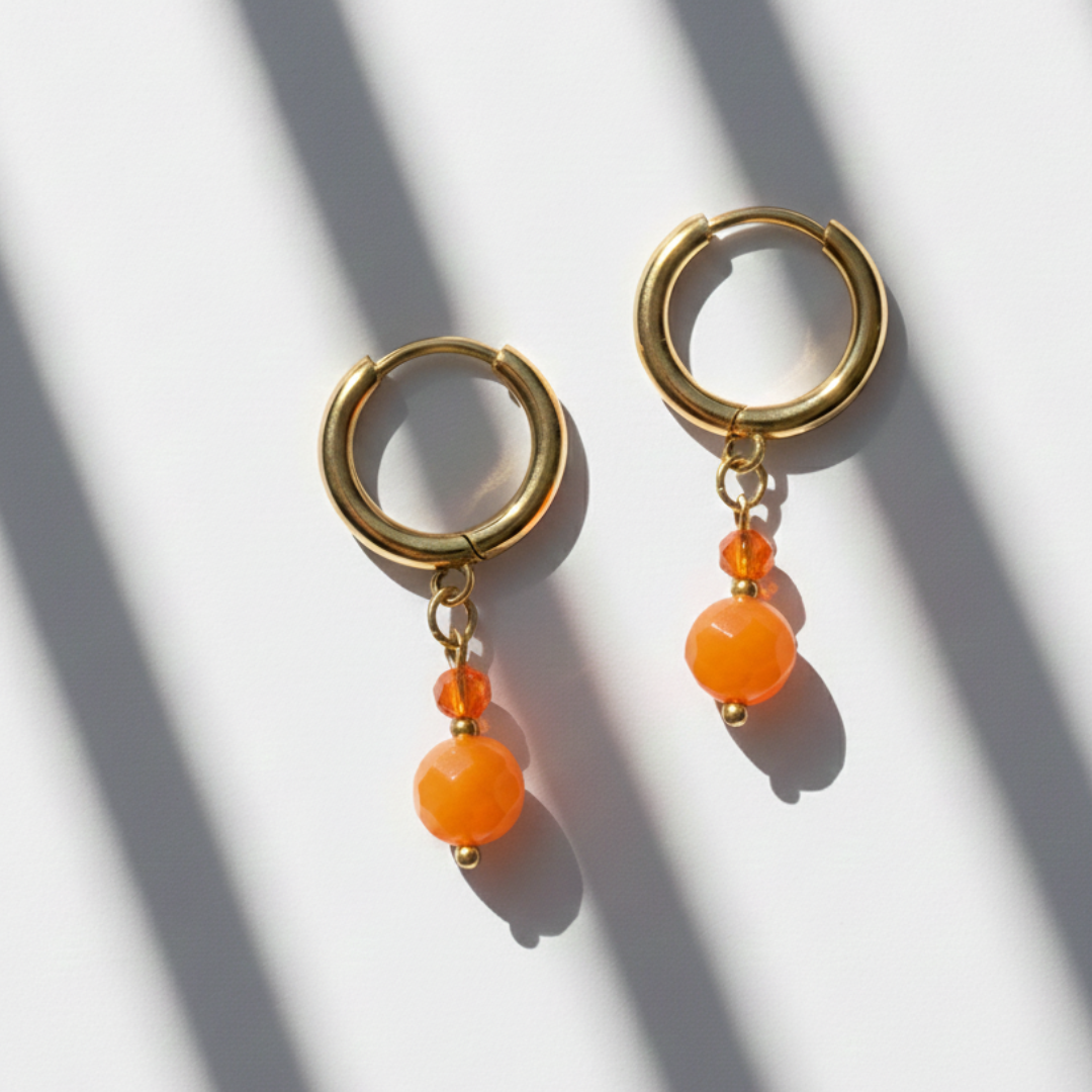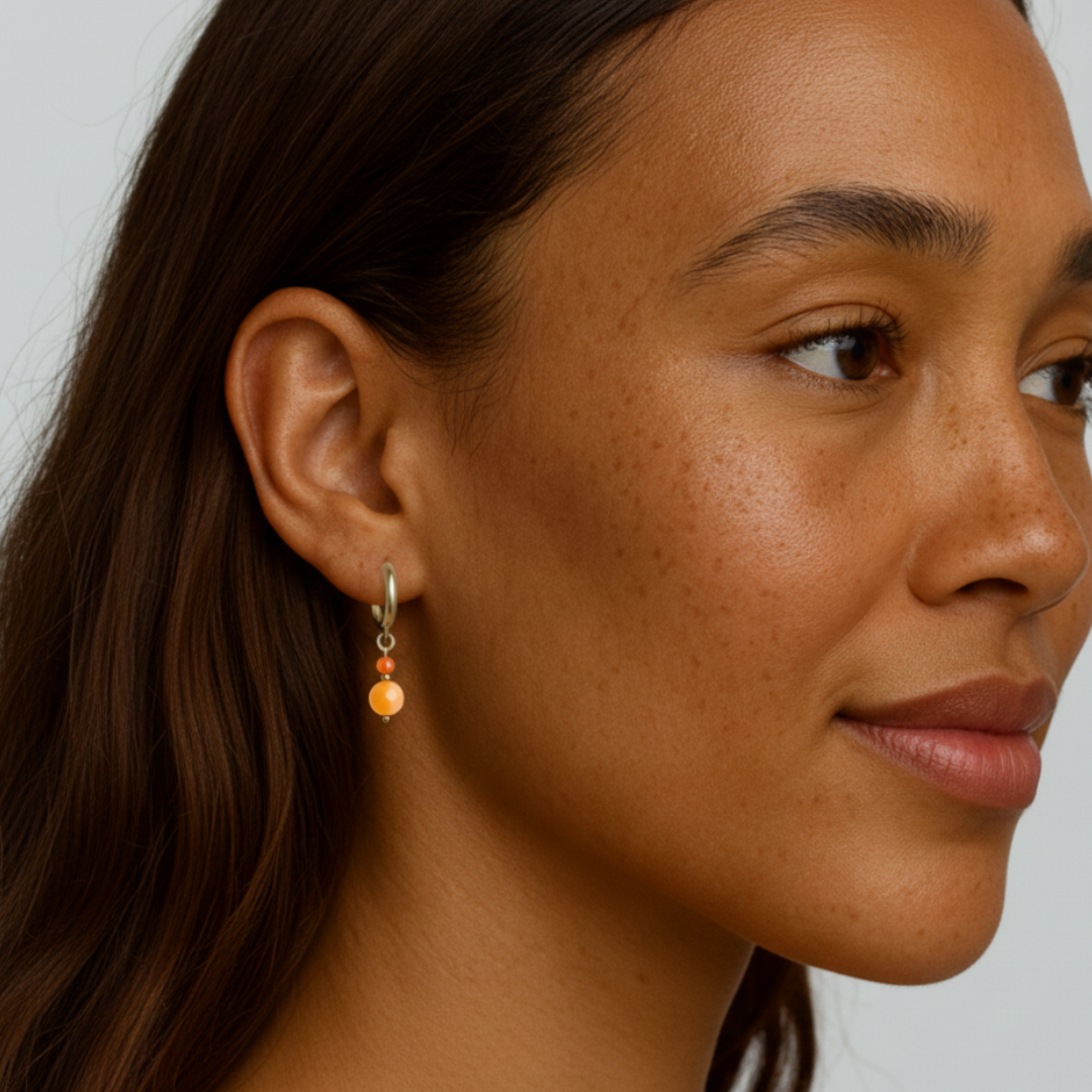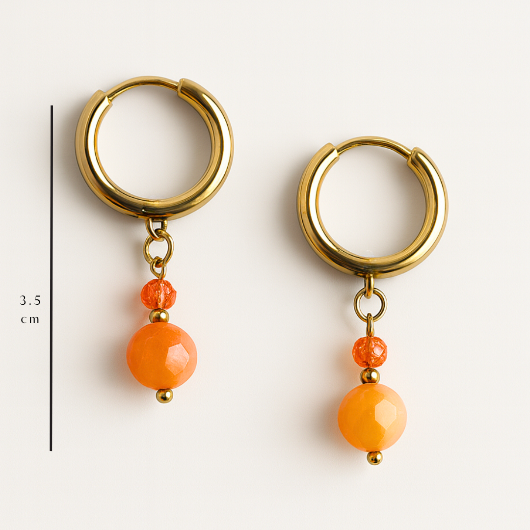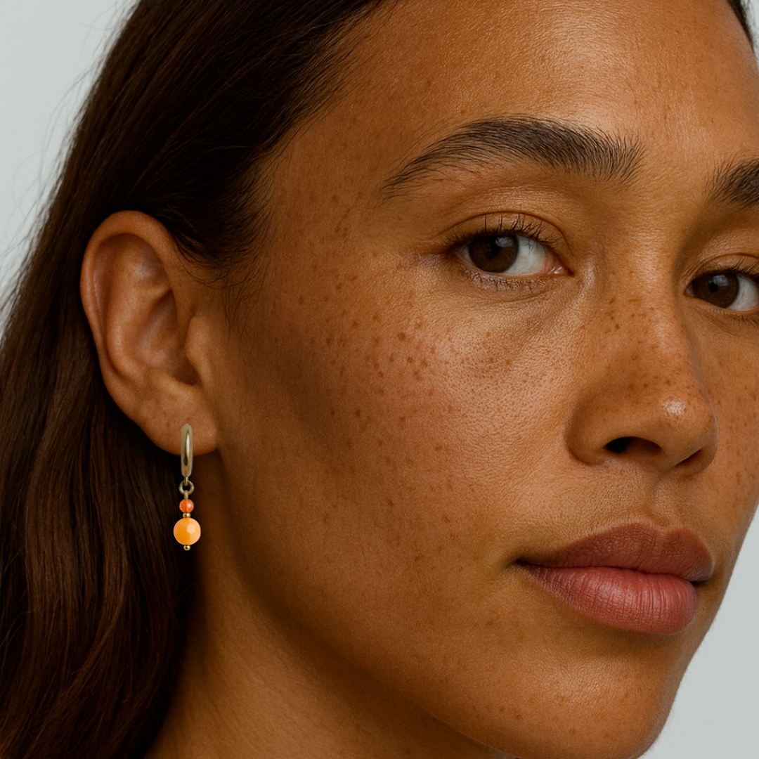 Soleá combina tonos cálidos en un diseño delicado y luminoso. Sus cuentas en naranja vibrante aportan un toque alegre y favorecedor, perfectos para dar vida a cualquier look. Un básico con personalidad, ligero y cómodo para todos los días.