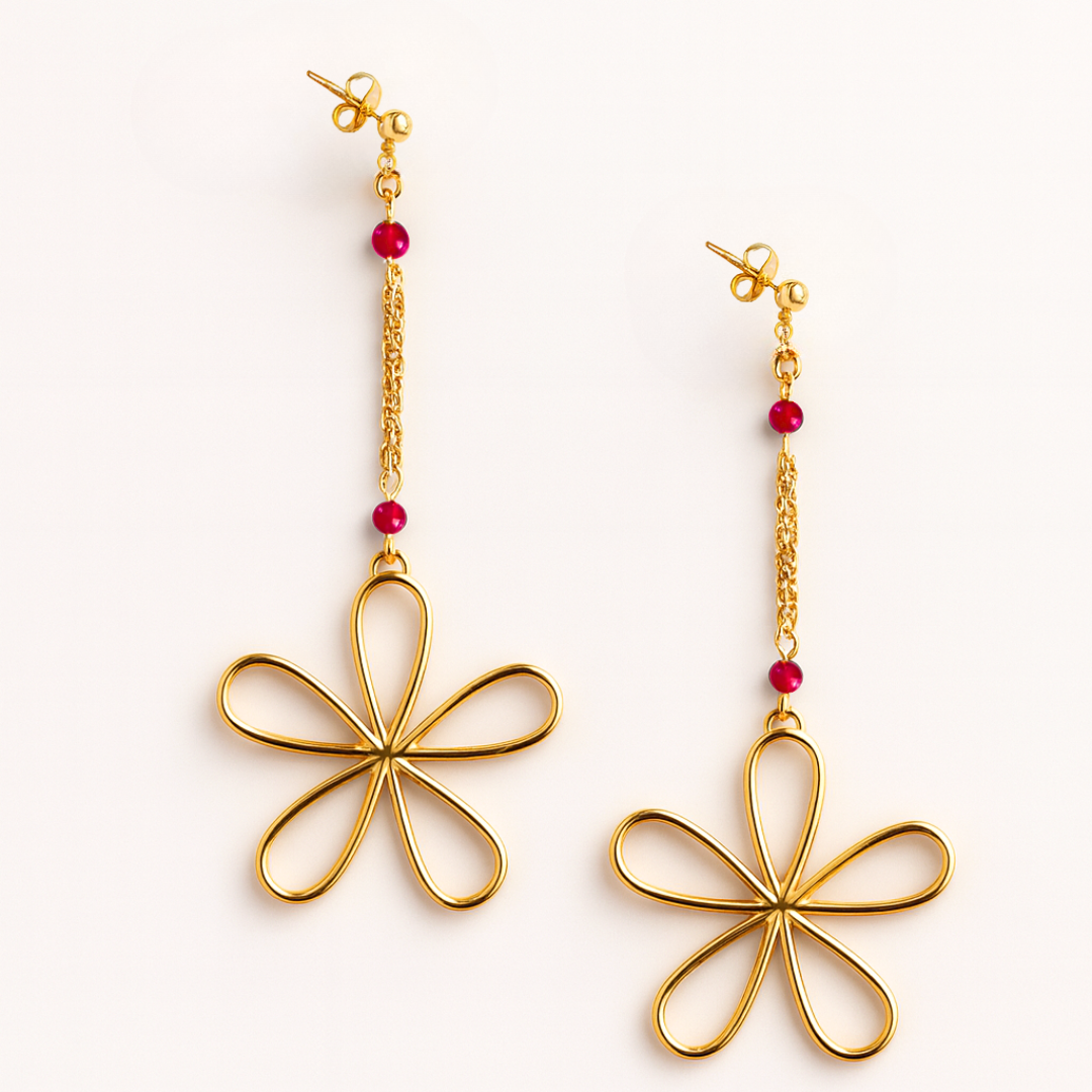Si te gusta lo atemporal, pero con un punto rompedor, Gera es para ti. Su silueta alargada estiliza el cuello, mientras que su diseño con la flor dorada, cadena delicada y toques de color vibrantes crean un equilibrio perfecto entre elegancia y personalidad.