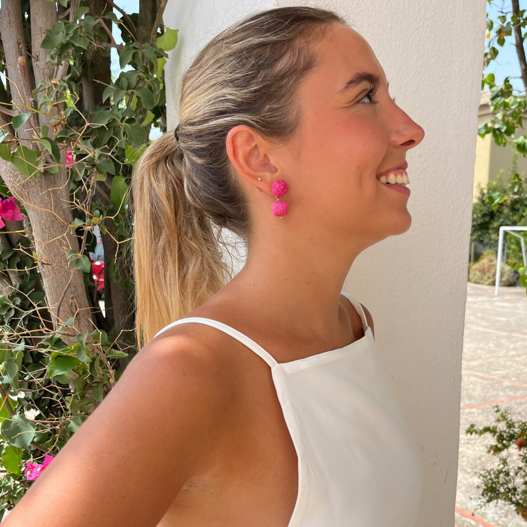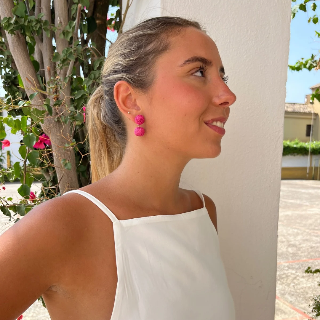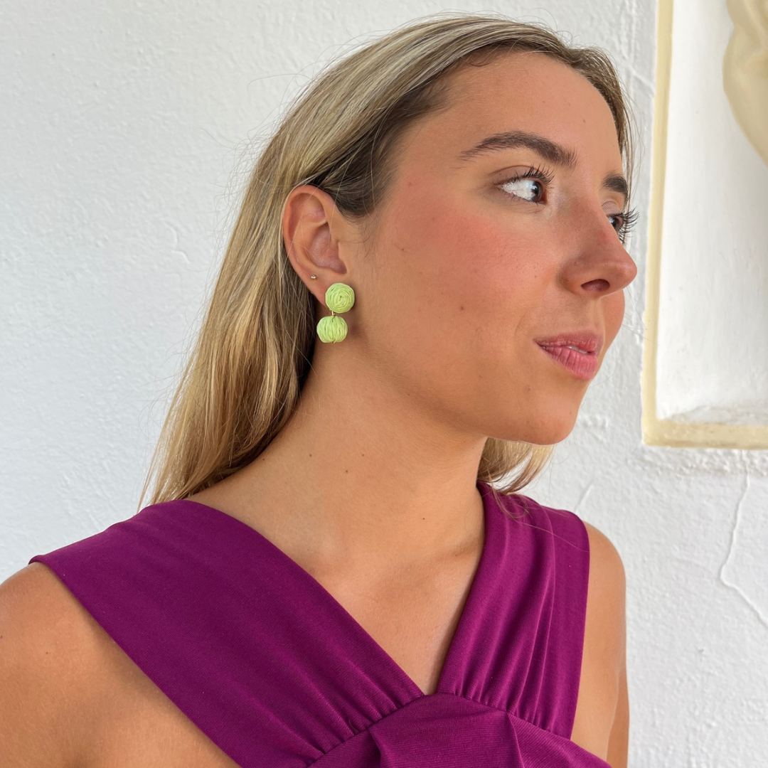 Los Pendientes Anna son piezas artesanales de bisutería negra de rafia, destacan por su ligereza y con su diseño original de bolas aportan un toque moderno y elegante. Destacan por su ligereza y comodidad, siendo perfectos para llevar durante todo el día, ya sea en eventos informales o para complementar tu estilo casual. Hechos cuidadosamente a mano, representan calidad y exclusividad en cada detalle