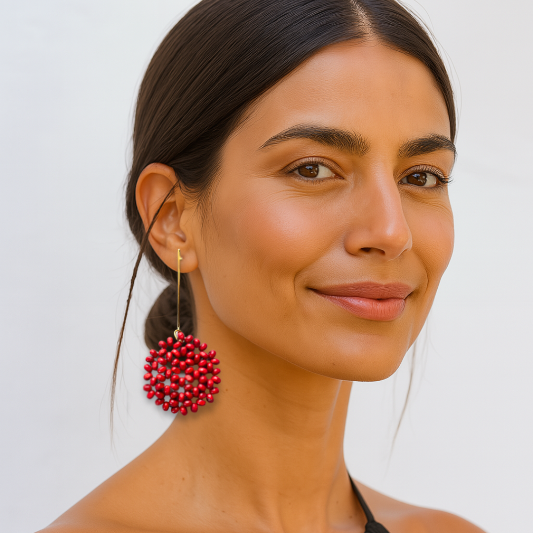 ¡Si hay un color que nunca falla, es el rojo! Los Pendientes Caelia Rojo son la combinación perfecta de elegancia y fuerza, todo con un toque de feminidad. Artesanales y llamativos, ligeros y elegantes, por lo que son la opción perfecta para una boda o un evento especial.